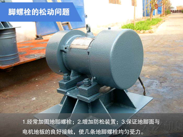 預(yù)防措施:1.選擇立式振動(dòng)電機(jī)(即里面增加平面軸承);2.盡量避免垂直或傾斜安裝。